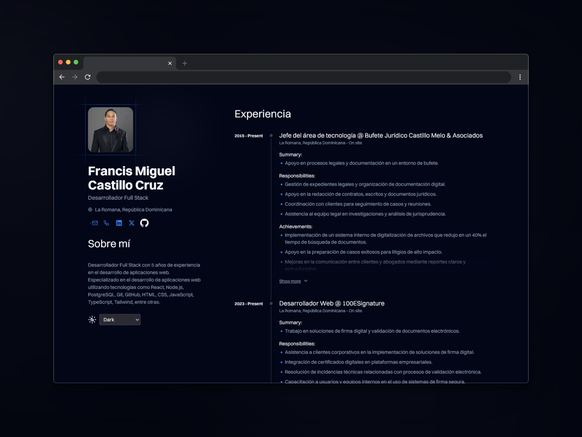 Hola! Soy Francis Castillo. Desarrollador FrontendDiseñador UI/UXDesarrollador Backend